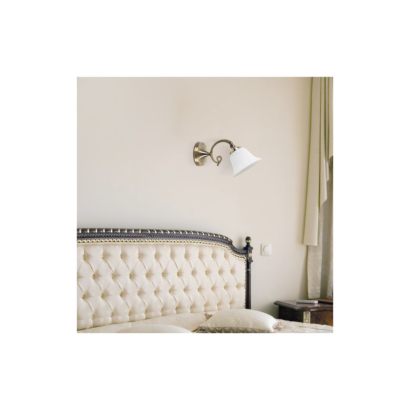 Klasické nástenné svietidlo beckworth. Odporúčaná miestnosť pre použitie je obývačka, jedáleň, spálňa. Farba lampy bronzová. Farba tienidla biele alabastrové sklo. Materiál lampy kovové. Materiál tienidla sklo