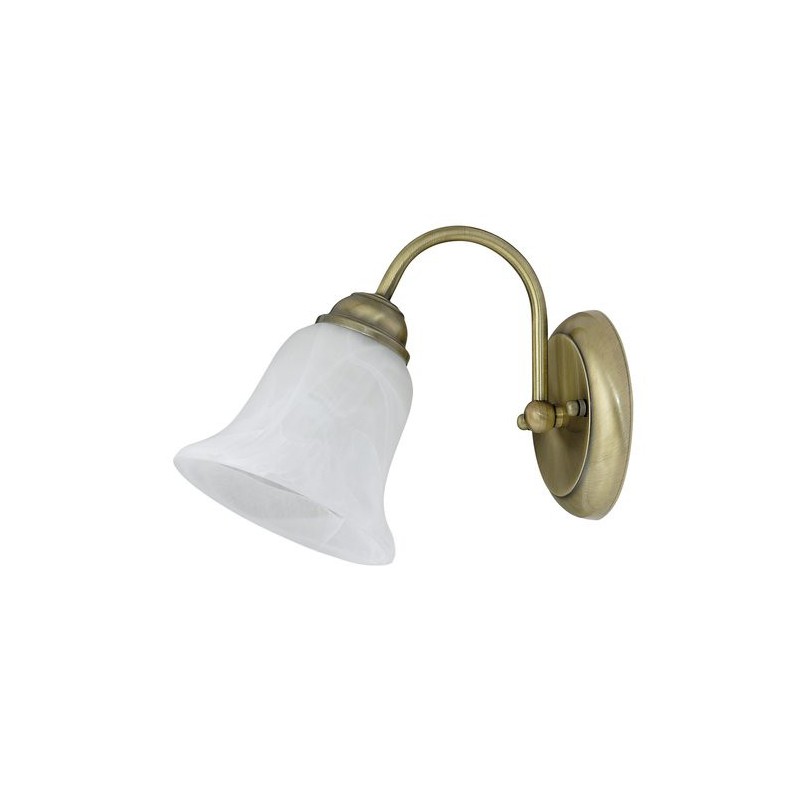 Klasické nástenné svietidlo francesca. Odporúčaná miestnosť pre použitie je obývačka, jedáleň, spálňa. Farba lampy bronzová. Farba tienidla biele alabastrové sklo. Materiál lampy kovové. Materiál tienidla sklo