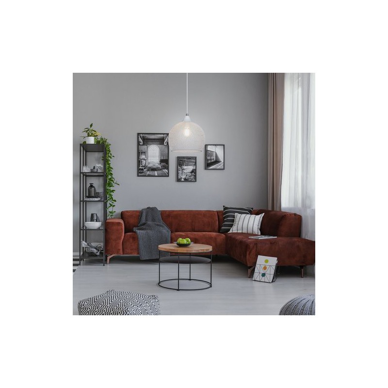Industriálny závesné svietidlo ronan. Odporúčaná miestnosť pre použitie je kuchyňa, obývačka. Farba lampy biela. Farba tienidla biela. Materiál lampy kovové. Materiál tienidla kovové