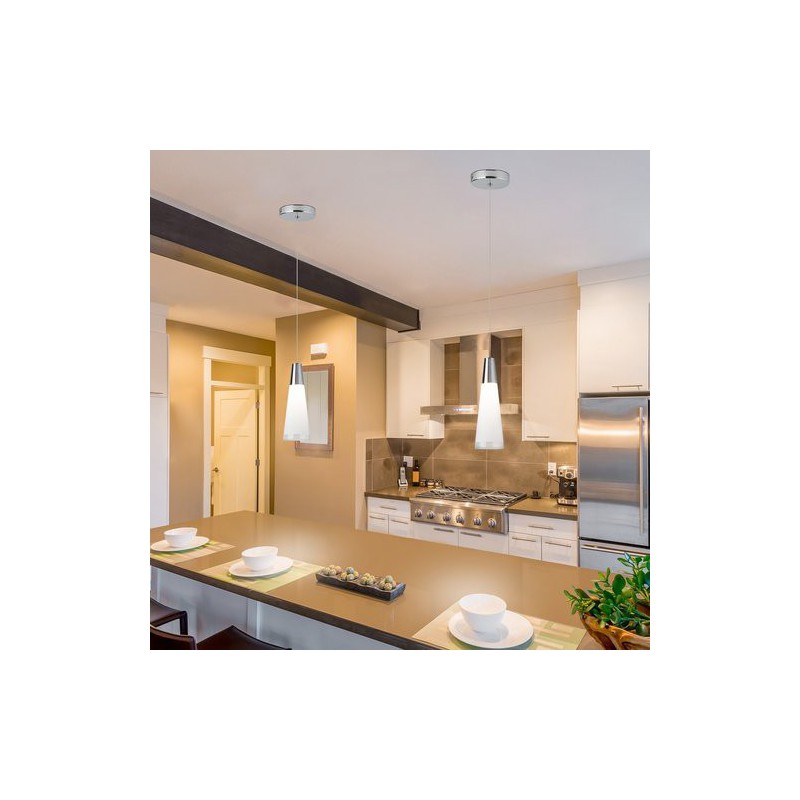 Moderné závesné svietidlo camille. Odporúčaná miestnosť pre použitie je obývačka. Farba lampy chrómová. Farba tienidla opálové sklo. Materiál lampy kovové. Materiál tienidla umelá hmota