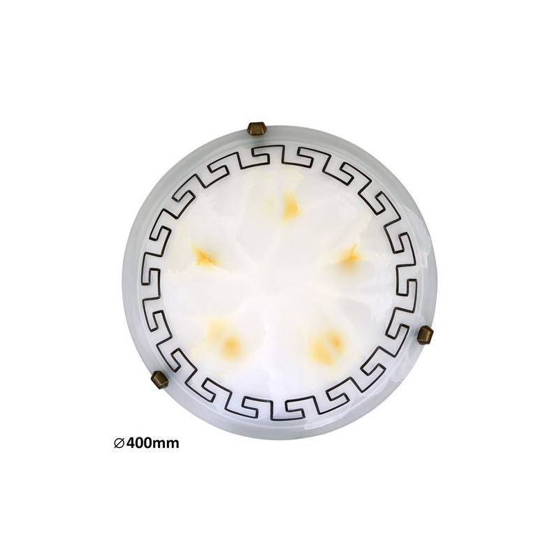 Mediteránsky stropné svietidlo etrusco. Odporúčaná miestnosť pre použitie je obývačka, pracovná izba. Farba lampy biele alabastrové sklo. Farba tienidla biele alabastrové sklo. Materiál lampy kovové. Materiál tienidla sklo