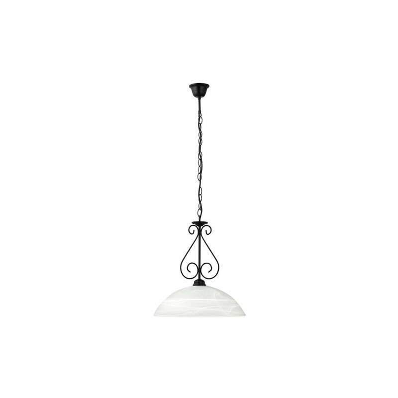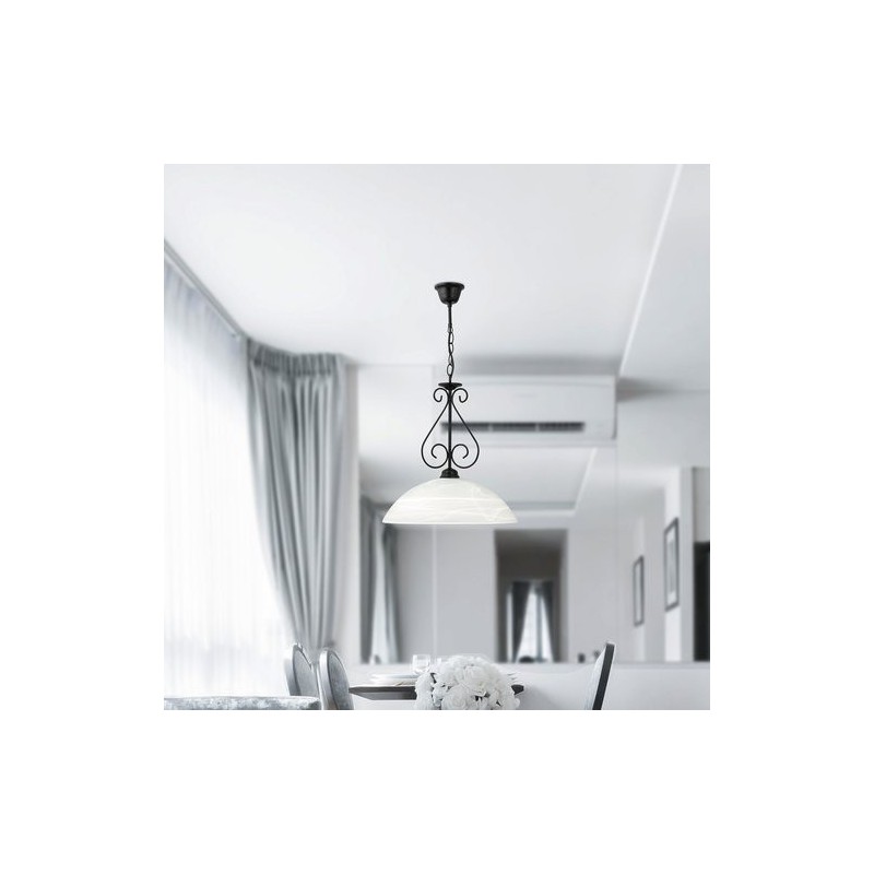 Mediteránsky luster athen. Odporúčaná miestnosť pre použitie je obývačka, jedáleň, spálňa. Farba lampy matná čierna. Farba tienidla biele alabastrové sklo. Materiál lampy kovové. Materiál tienidla sklo