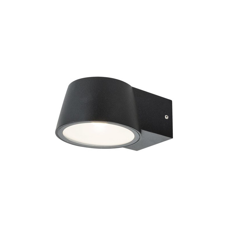 Moderné vonkajšie nástenné svietidlo guyana. Odporúčaná miestnosť pre použitie je stena domu. Farba lampy čierna. Farba tienidla priehľadná. Materiál lampy kovové. Materiál tienidla sklo