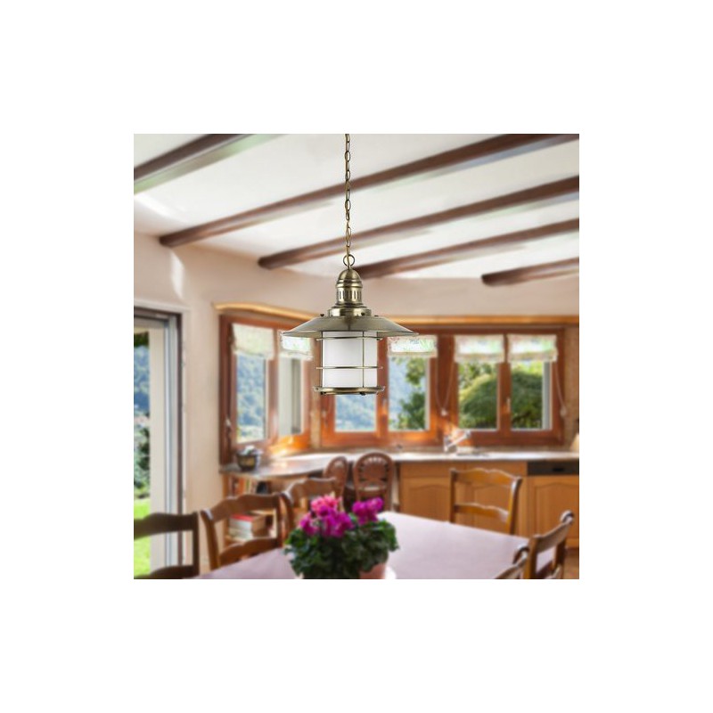 Industriálny závesné svietidlo sudan. Odporúčaná miestnosť pre použitie je obývačka, jedáleň. Farba lampy bronzová. Farba tienidla biela. Materiál lampy kovové. Materiál tienidla sklo