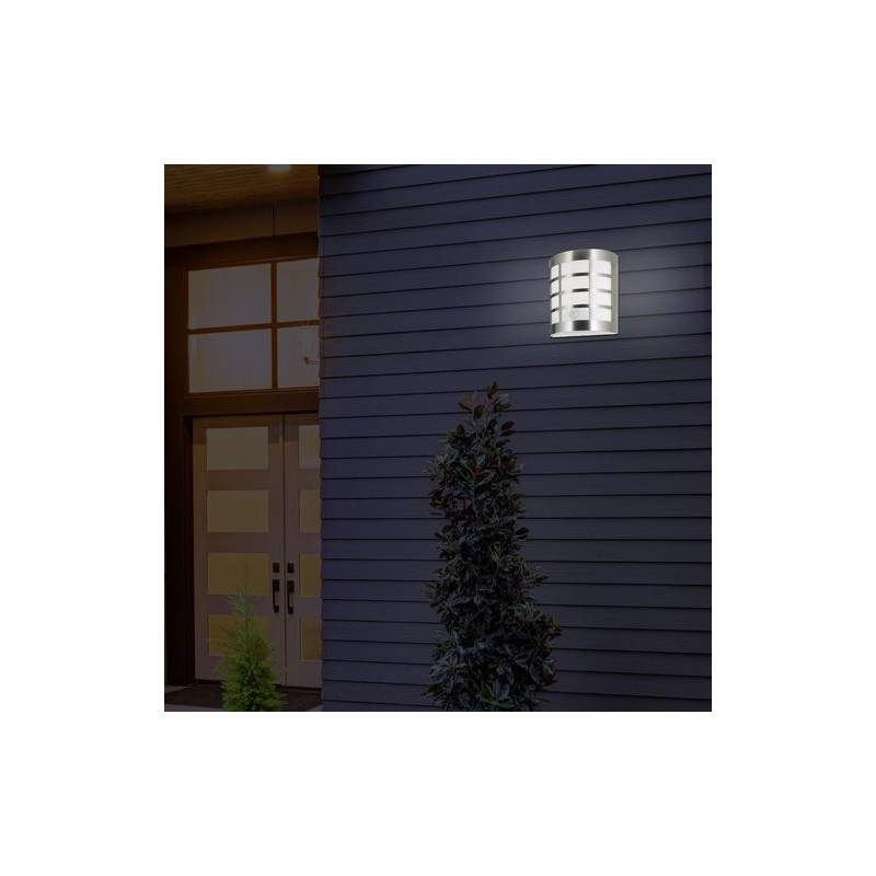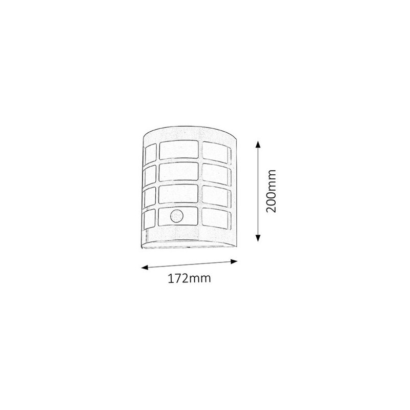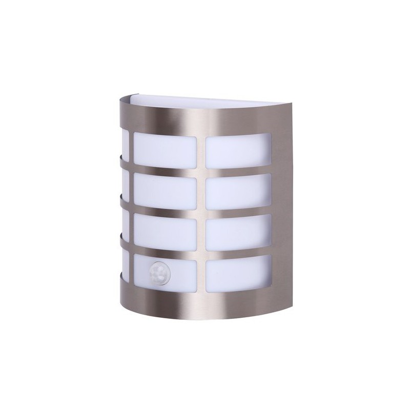 Moderné vonkajšie nástenné svietidlo sevilla. Odporúčaná miestnosť pre použitie je terasa, stena domu. So senzorom pohybu 2-8m, 90°. Farba lampy nehrdzavejúca ocel. Farba tienidla biela. Materiál lampy umelá hmota. Materiál tienidla kovové/ umelá hmota