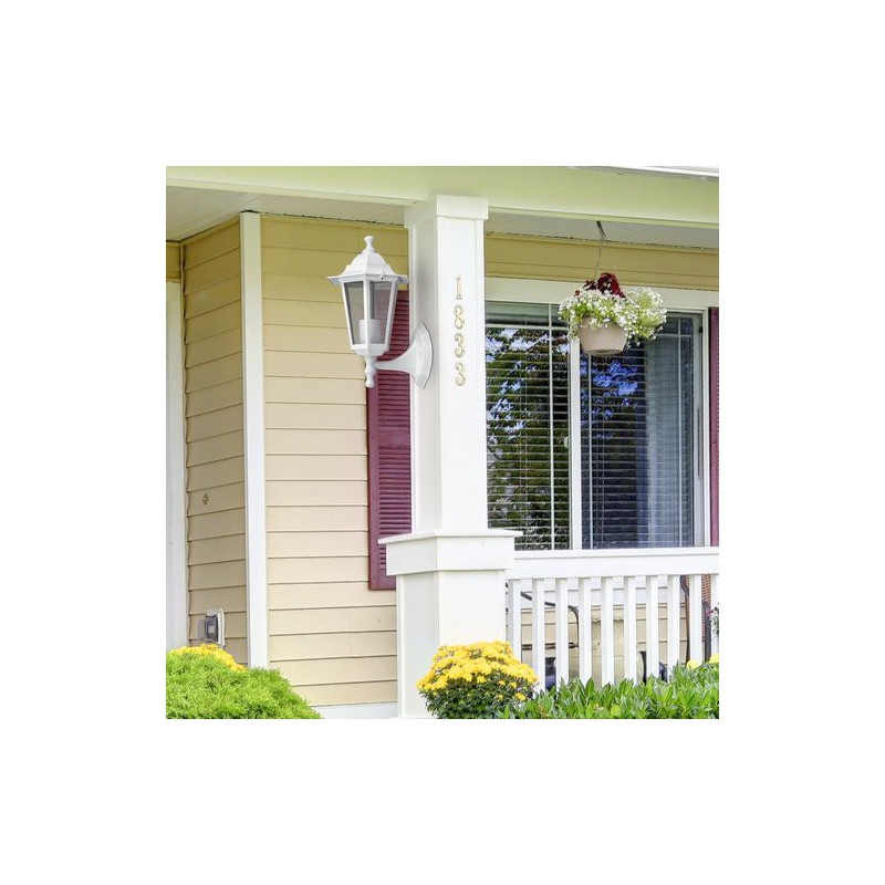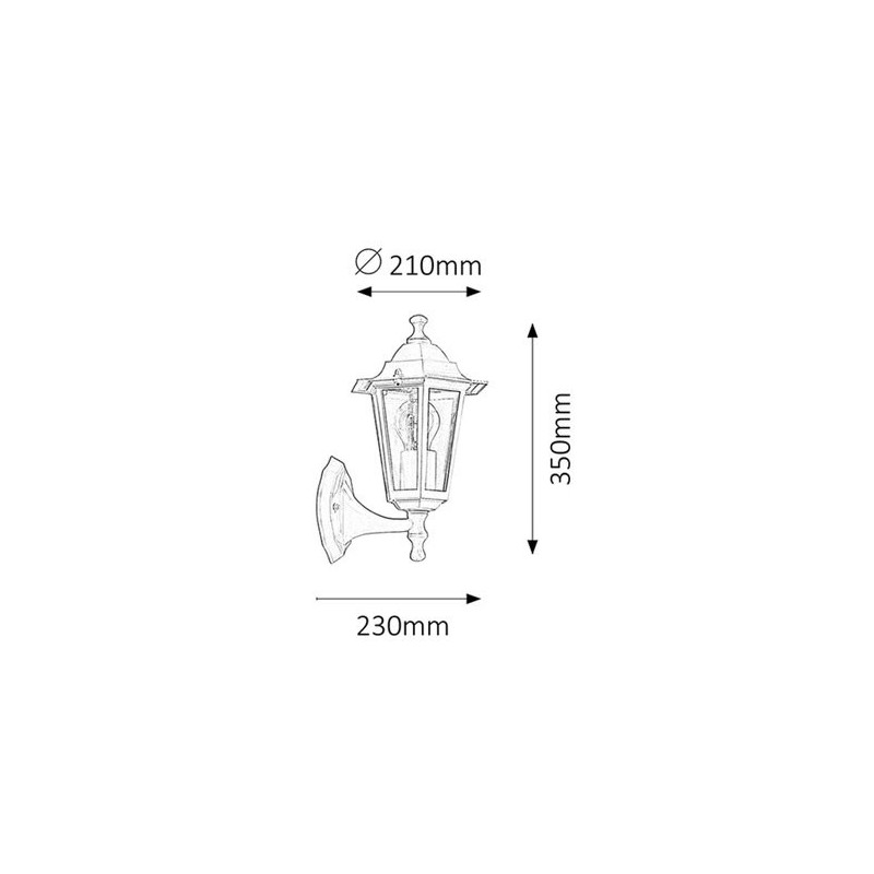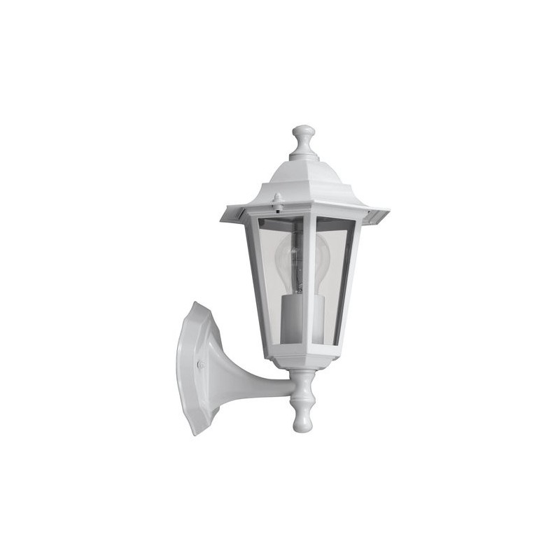 Klasické vonkajšie nástenné svietidlo velence. Odporúčaná miestnosť pre použitie je terasa, stena domu. Farba lampy biela. Farba tienidla priehľadná. Materiál lampy kovové. Materiál tienidla sklo