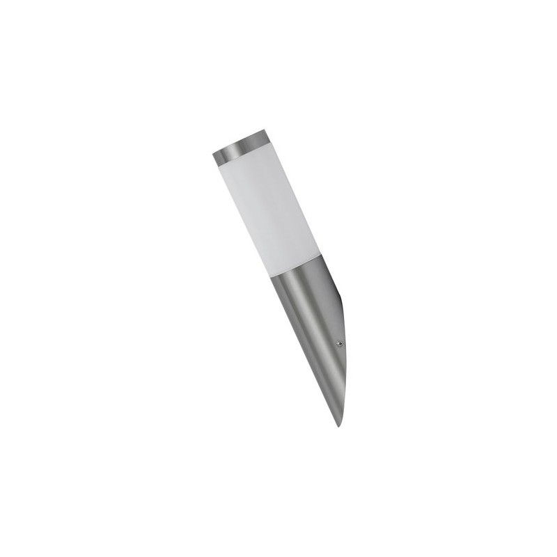 Moderné vonkajšie nástenné svietidlo inox torch. Odporúčaná miestnosť pre použitie je terasa, stena domu. Farba lampy nehrdzavejúca ocel. Farba tienidla biela. Materiál lampy kovové. Materiál tienidla umelá hmota