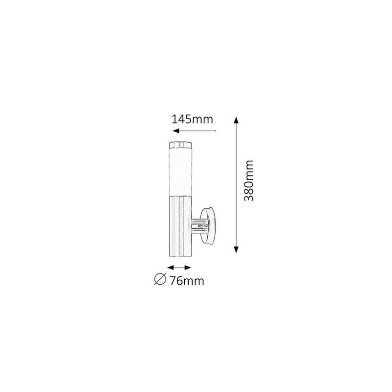 Moderné vonkajšie nástenné svietidlo inox torch. Odporúčaná miestnosť pre použitie je terasa, stena domu. Farba lampy nehrdzavejúca ocel. Farba tienidla biela. Materiál lampy kovové. Materiál tienidla umelá hmota