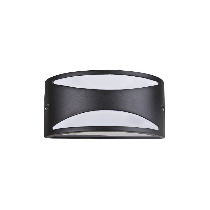 Moderné vonkajšie nástenné svietidlo manhattan. Odporúčaná miestnosť pre použitie je terasa, stena domu. Farba lampy matná čierna. Farba tienidla biela. Materiál lampy kovové. Materiál tienidla umelá hmota