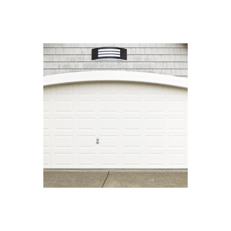 Moderné vonkajšie nástenné svietidlo roma. Odporúčaná miestnosť pre použitie je terasa, stena domu. Farba lampy matná čierna. Farba tienidla biela. Materiál lampy umelá hmota. Materiál tienidla kovové/ umelá hmota