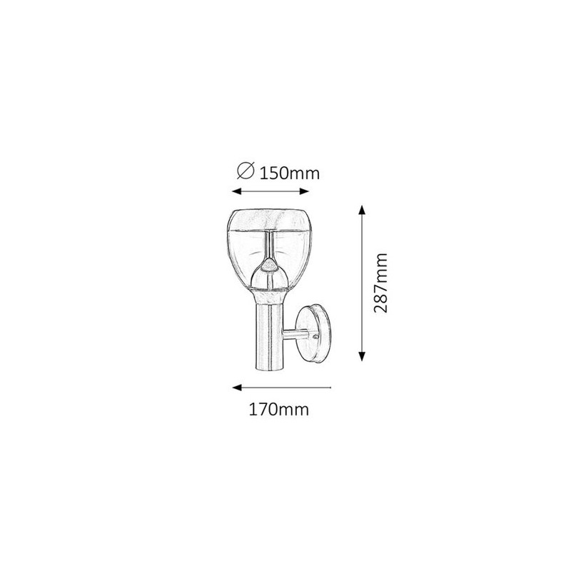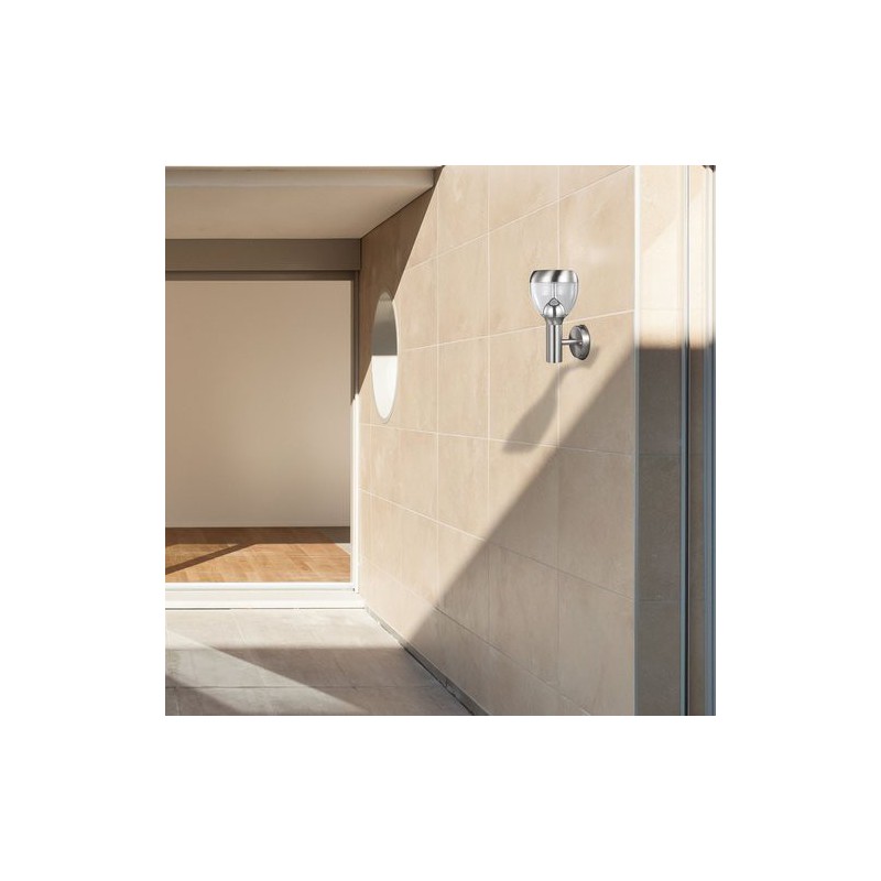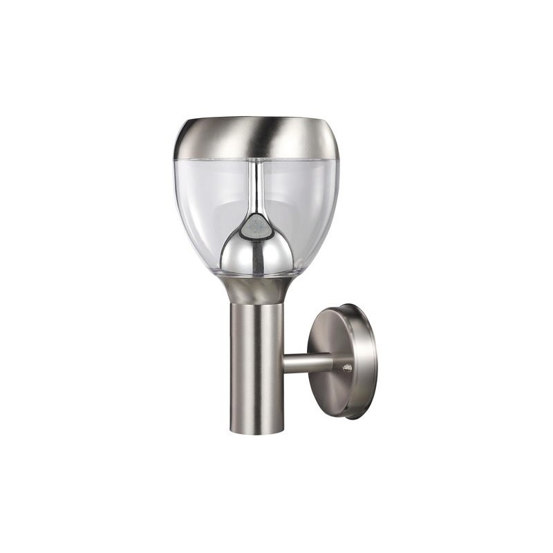 Moderné vonkajšie nástenné svietidlo dresden. Odporúčaná miestnosť pre použitie je terasa, stena domu. Farba lampy nehrdzavejúca ocel. Farba tienidla priehľadná. Materiál lampy nehrdzavejúca oceľ. Materiál tienidla umelá hmota