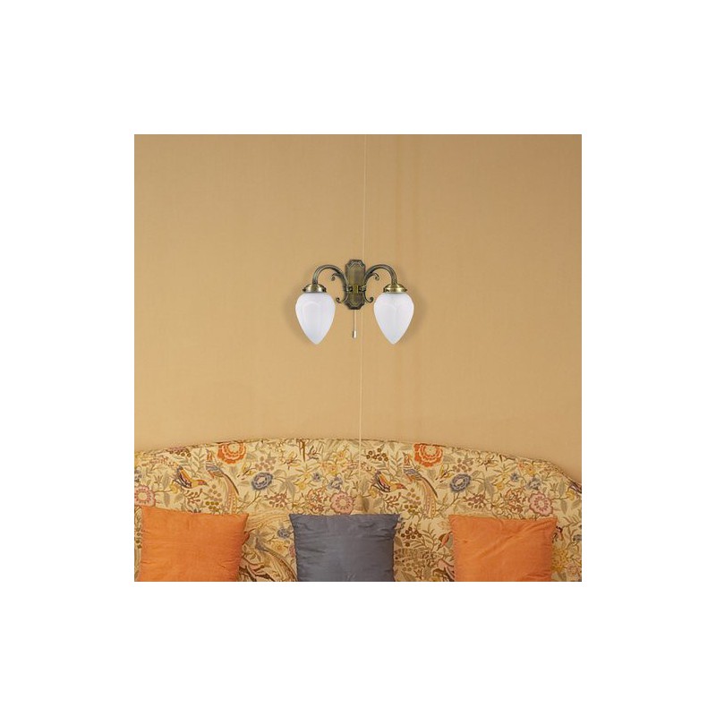 Klasické nástenné svietidlo maya. Odporúčaná miestnosť pre použitie je obývačka, jedáleň, spálňa. Farba lampy bronzová. Farba tienidla opálové sklo. Materiál lampy kovové. Materiál tienidla sklo