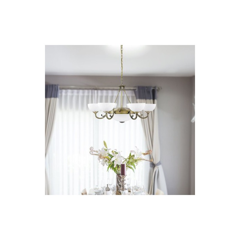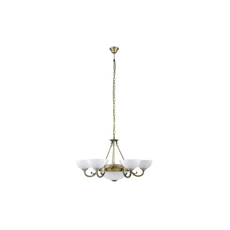 Klasické luster marlene. Odporúčaná miestnosť pre použitie je obývačka, jedáleň, spálňa. Farba lampy bronzová. Farba tienidla biele alabastrové sklo. Materiál lampy kovové. Materiál tienidla sklo