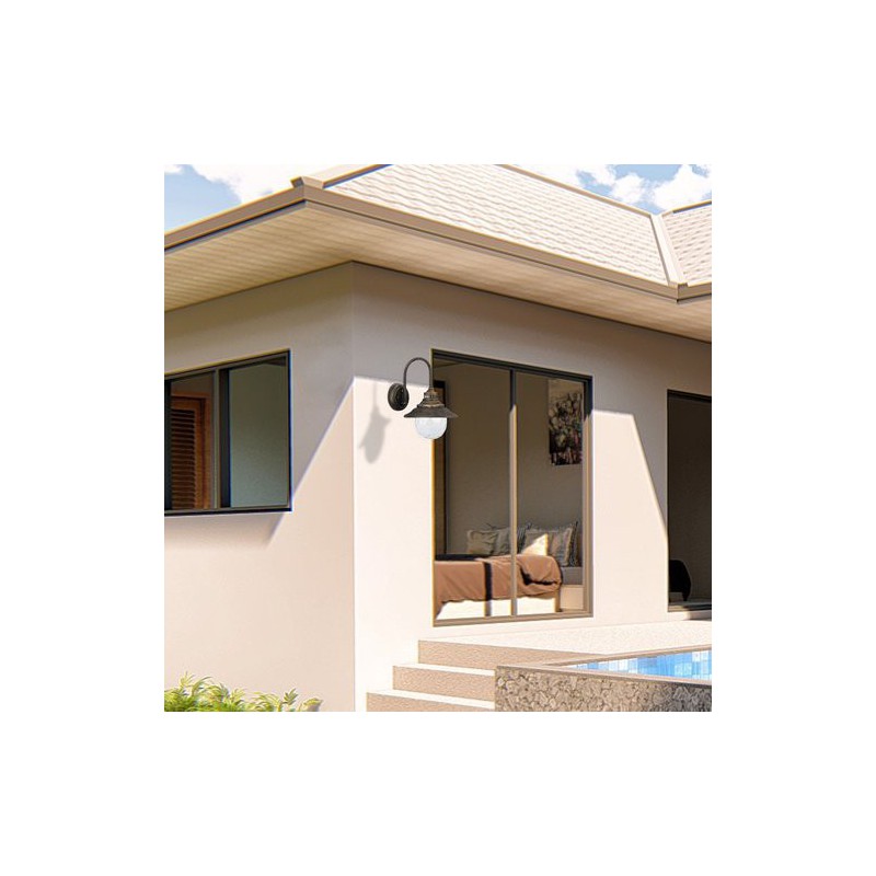 Vintage/ Romantický vonkajšie nástenné svietidlo barcelona. Odporúčaná miestnosť pre použitie je terasa, stena domu. Farba lampy antická zlatá. Farba tienidla priehľadná. Materiál lampy kovové. Materiál tienidla sklo
