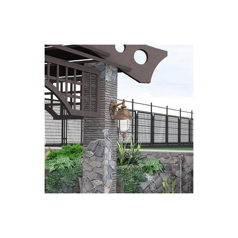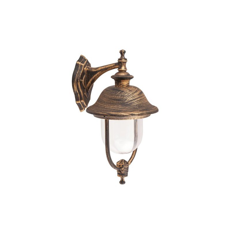 Klasické vonkajšie nástenné svietidlo new york. Odporúčaná miestnosť pre použitie je terasa, stena domu. Farba lampy antická zlatá. Farba tienidla priehľadná. Materiál lampy kovové. Materiál tienidla umelá hmota