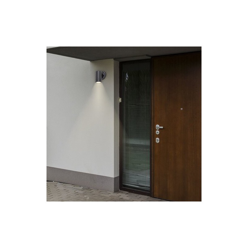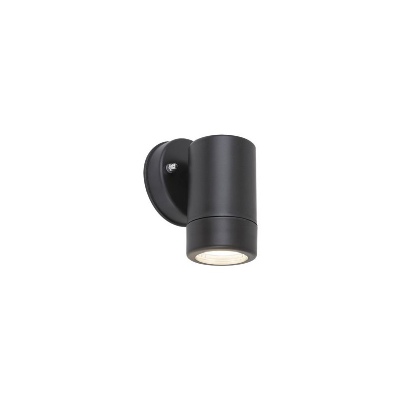 Minimalistický vonkajšie nástenné svietidlo medina. Odporúčaná miestnosť pre použitie je stena domu. Farba lampy matná čierna. Farba tienidla priehľadná. Materiál lampy umelá hmota. Materiál tienidla umelá hmota