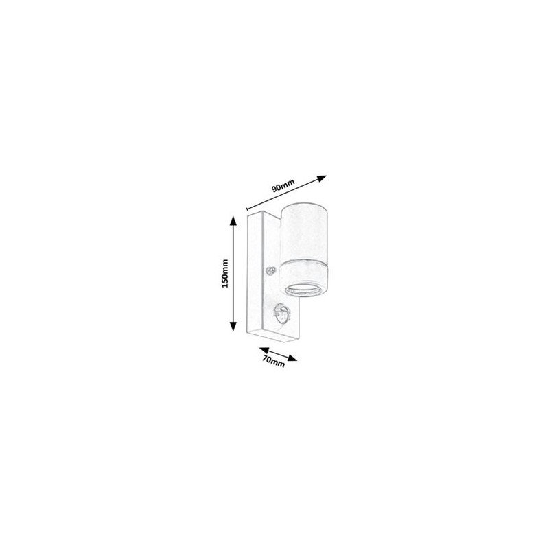 Minimalistický vonkajšie nástenné svietidlo medina. Odporúčaná miestnosť pre použitie je stena domu. So senzorom pohybu 2-8m, 90°. Farba lampy matná biela. Farba tienidla priehľadná. Materiál lampy umelá hmota. Materiál tienidla umelá hmota